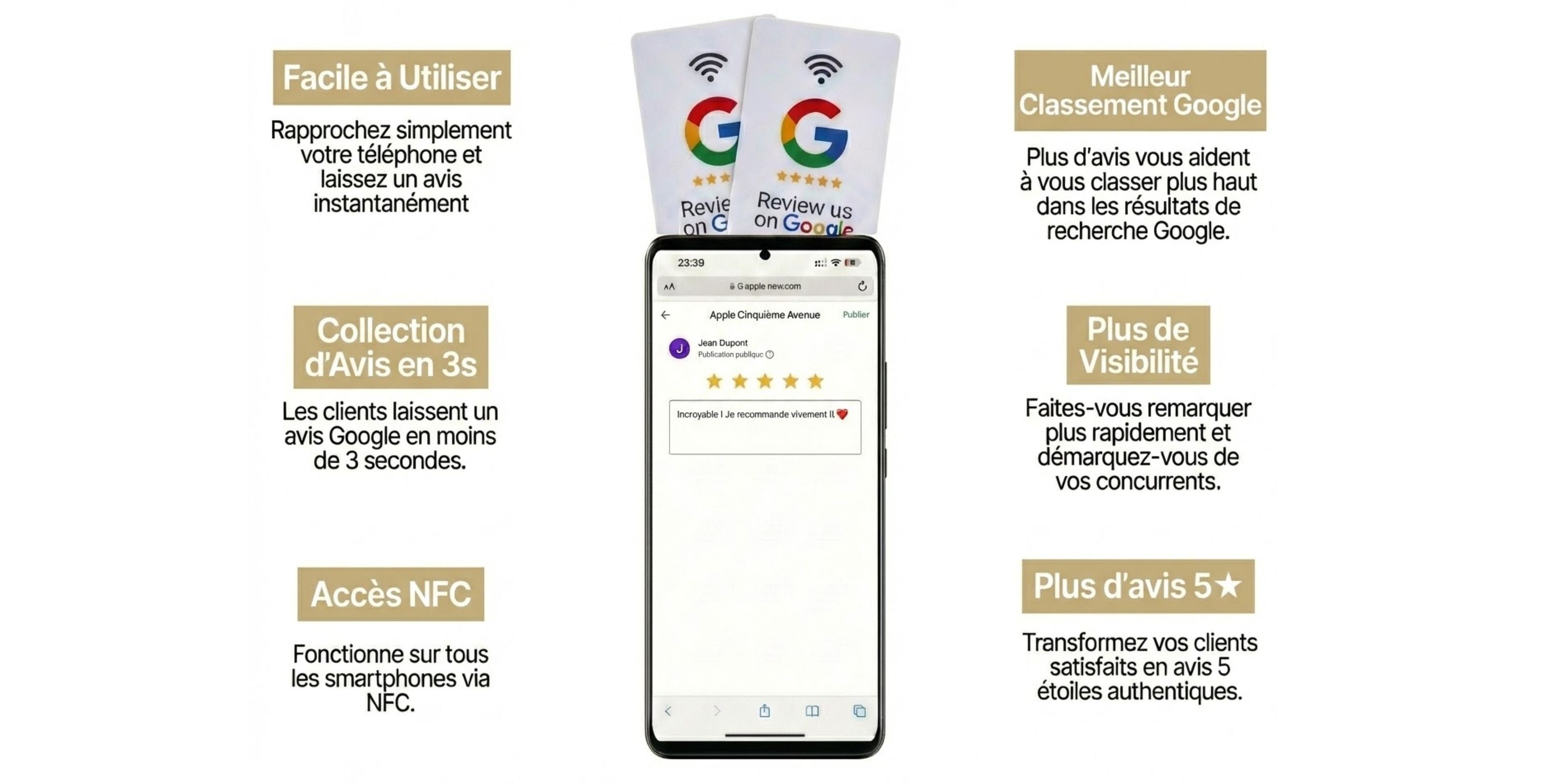 Ne laissez plus vos clients repartir sans laisser de trace. Avec la carte NFC PopReview, transformez chaque passage en caisse en une nouvelle recommandation sur Google.